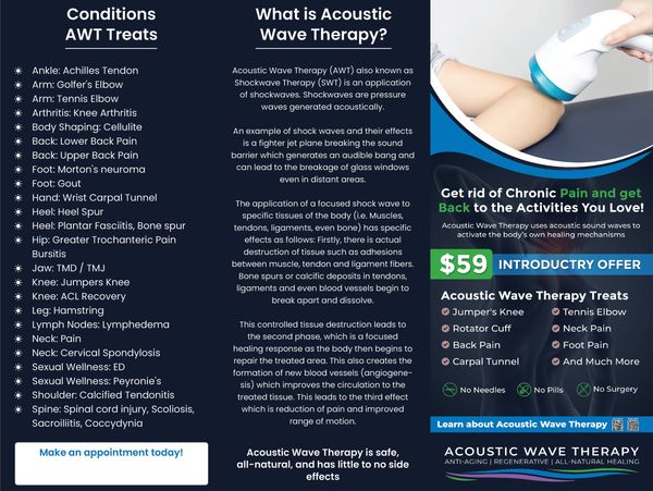 If you own one of our Focused Shockwave Therapy Machines our Tr-fold Shockwave Therapy Brochure will give your patients insight into how shockwave works and what conditions it can treat.